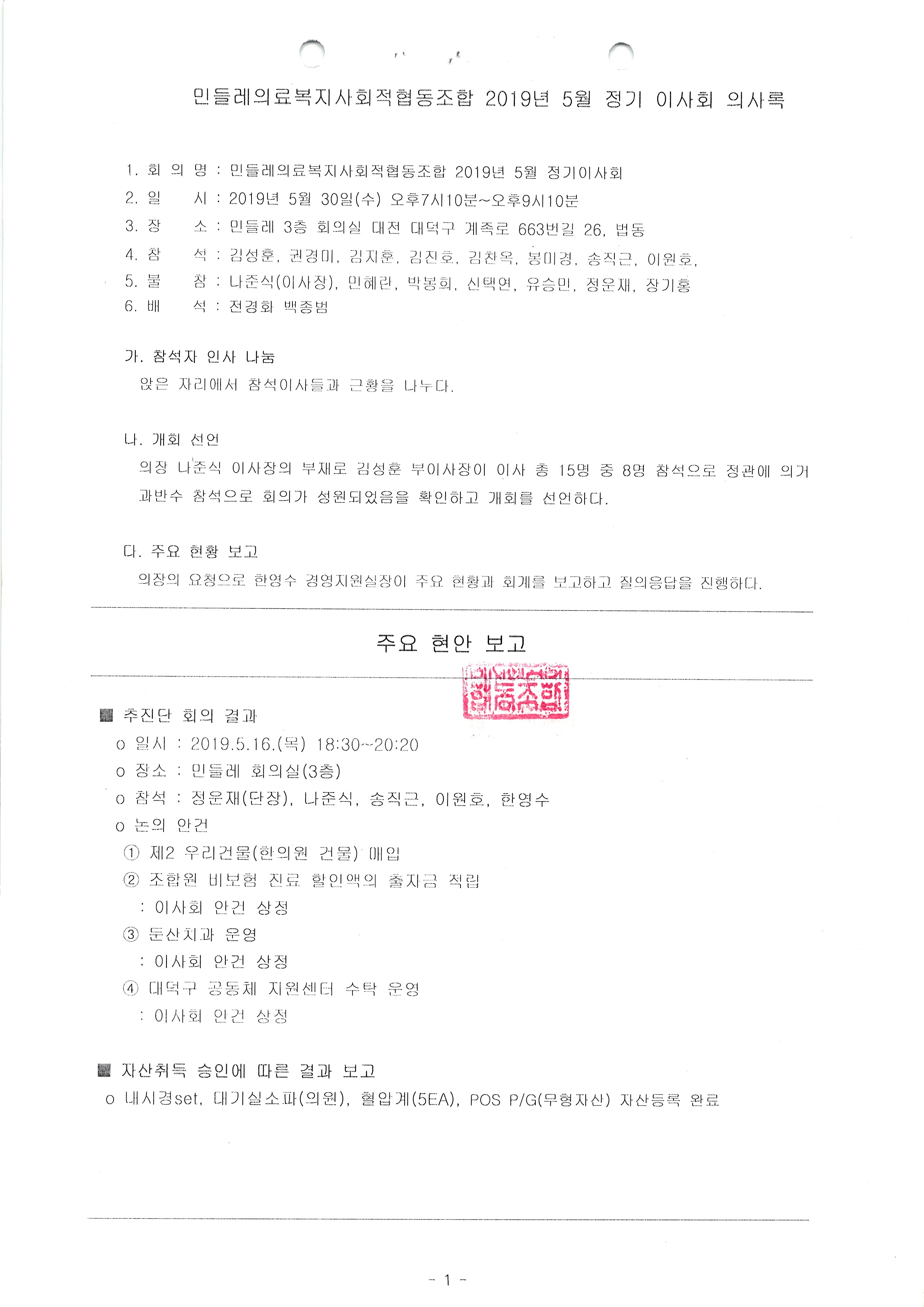 [2019-05] 정기이사회 결과보고