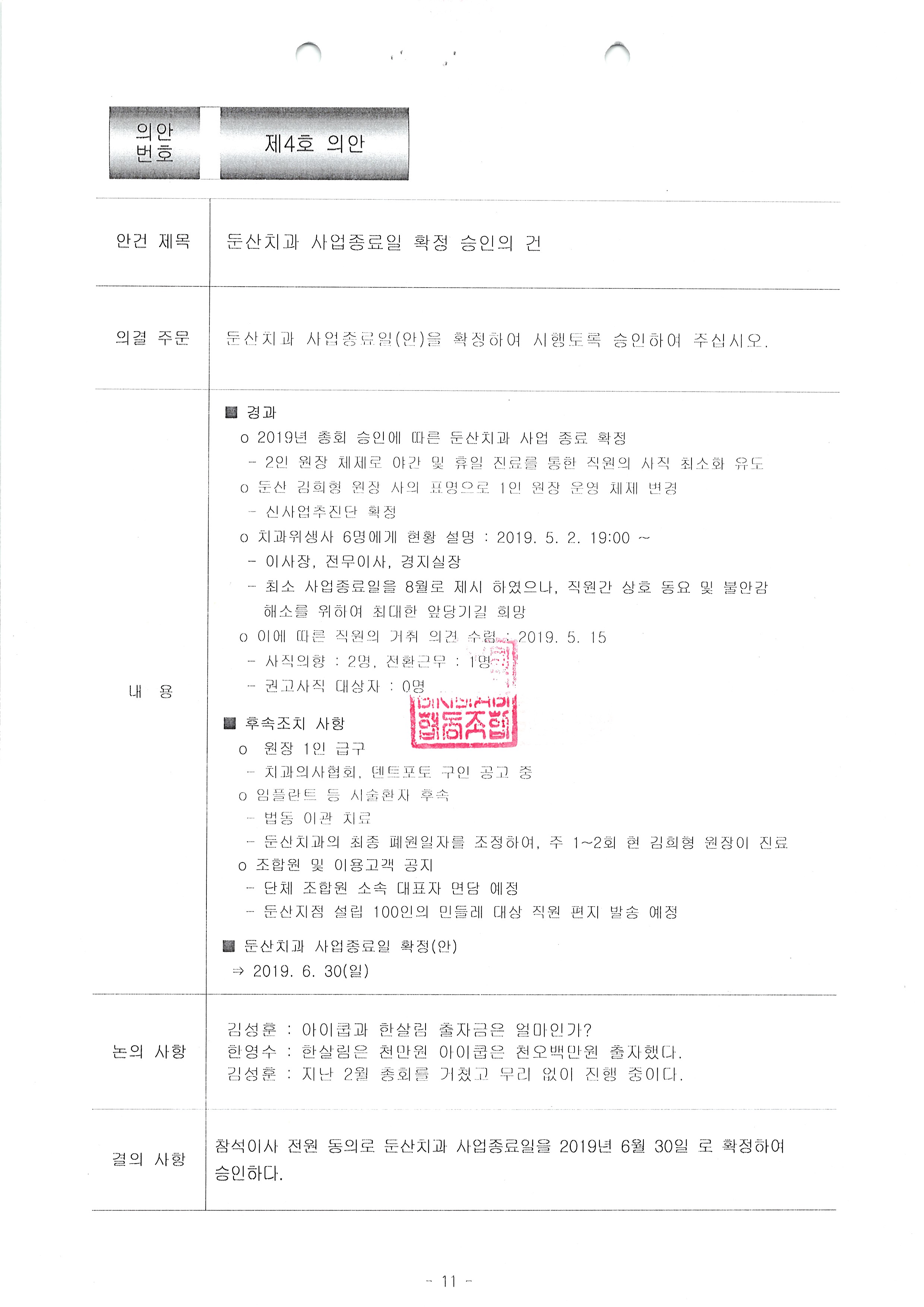 [2019-06] 정기이사회 결과보고