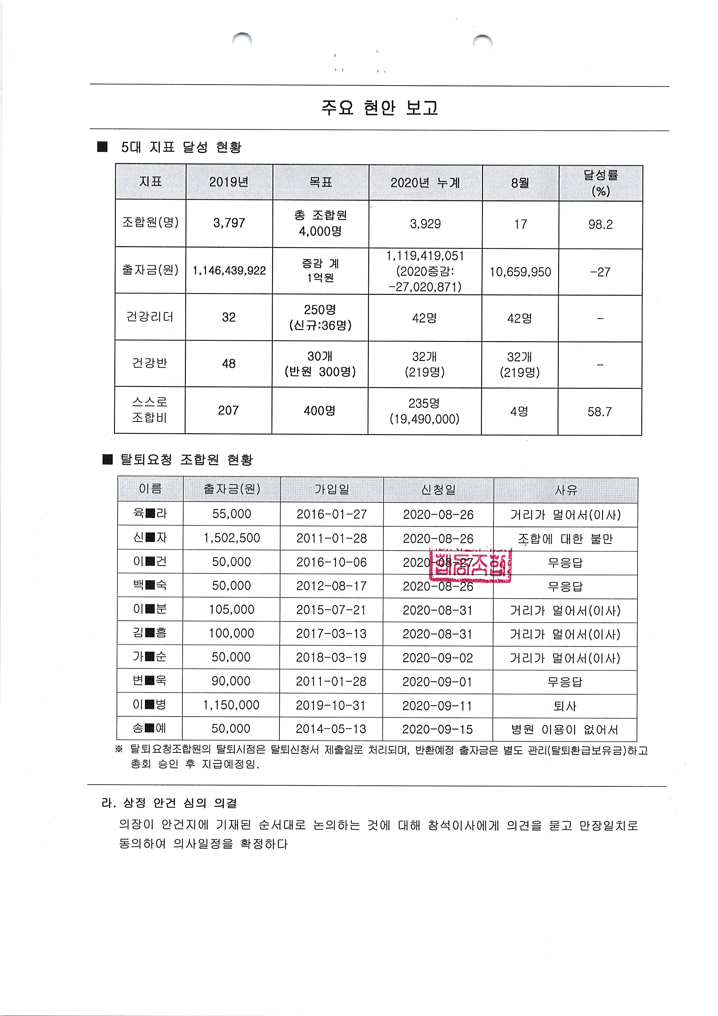 [2020-09] 정기이사회 결과보고 상세내용