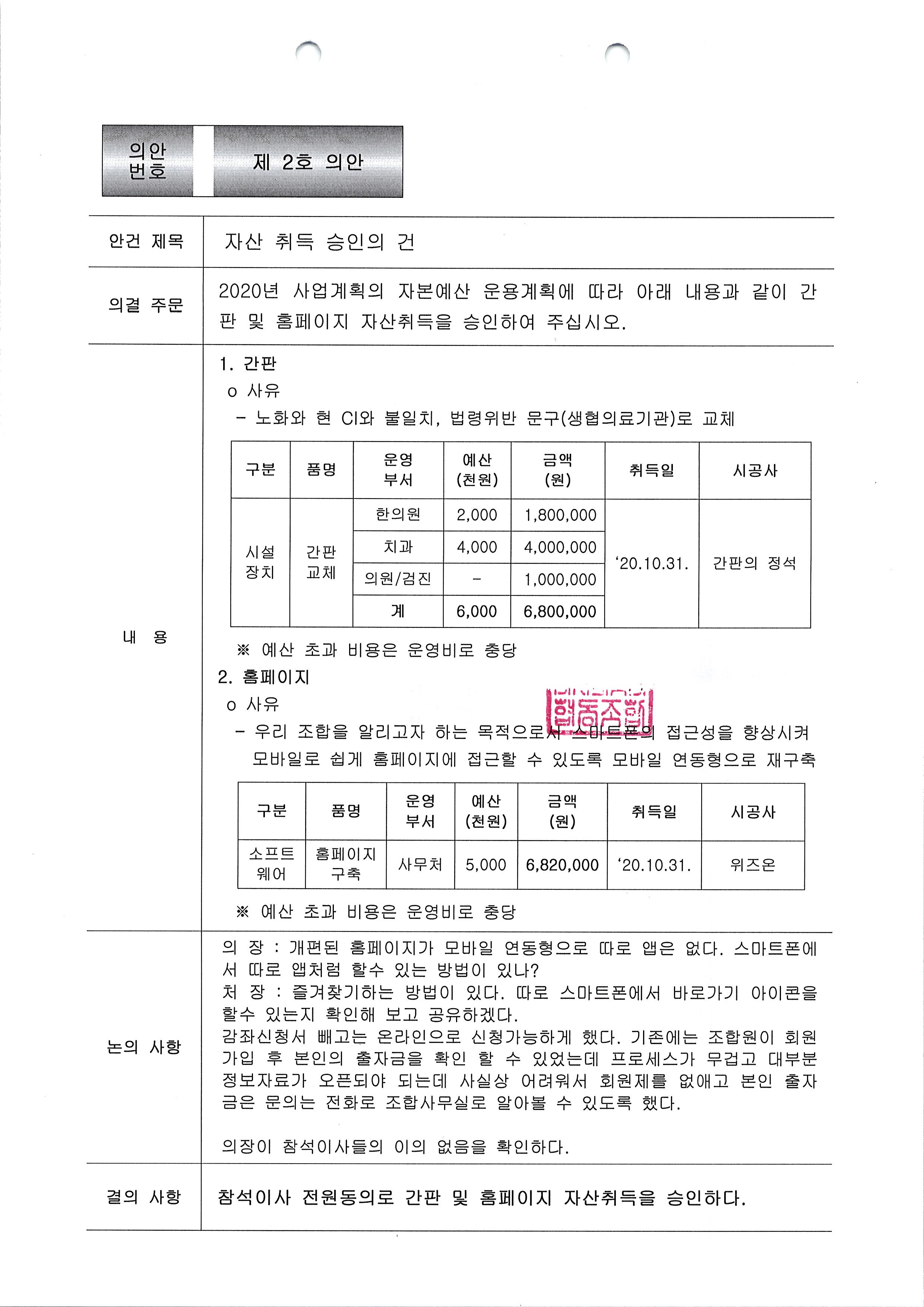 [2020-10] 정기이사회 결과보고 상세내용