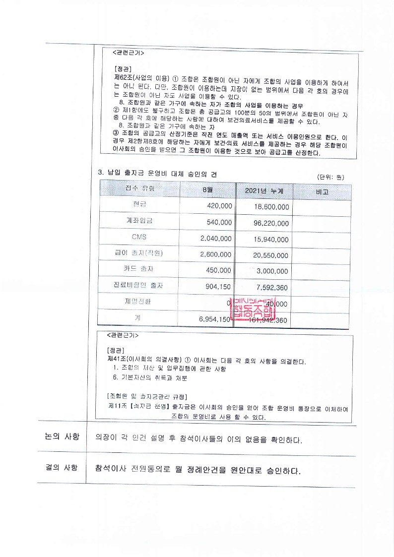 [2021-08] 정기이사회 결과보고