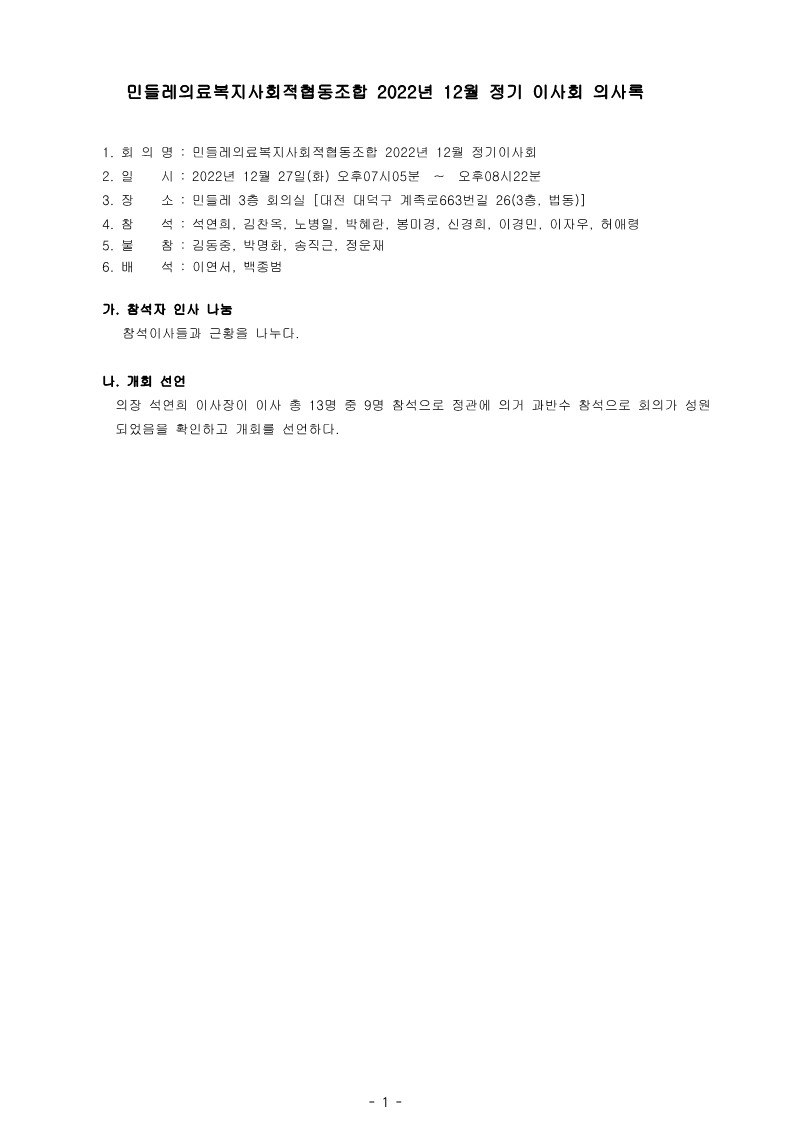 [2022-12] 정기이사회 결과보고