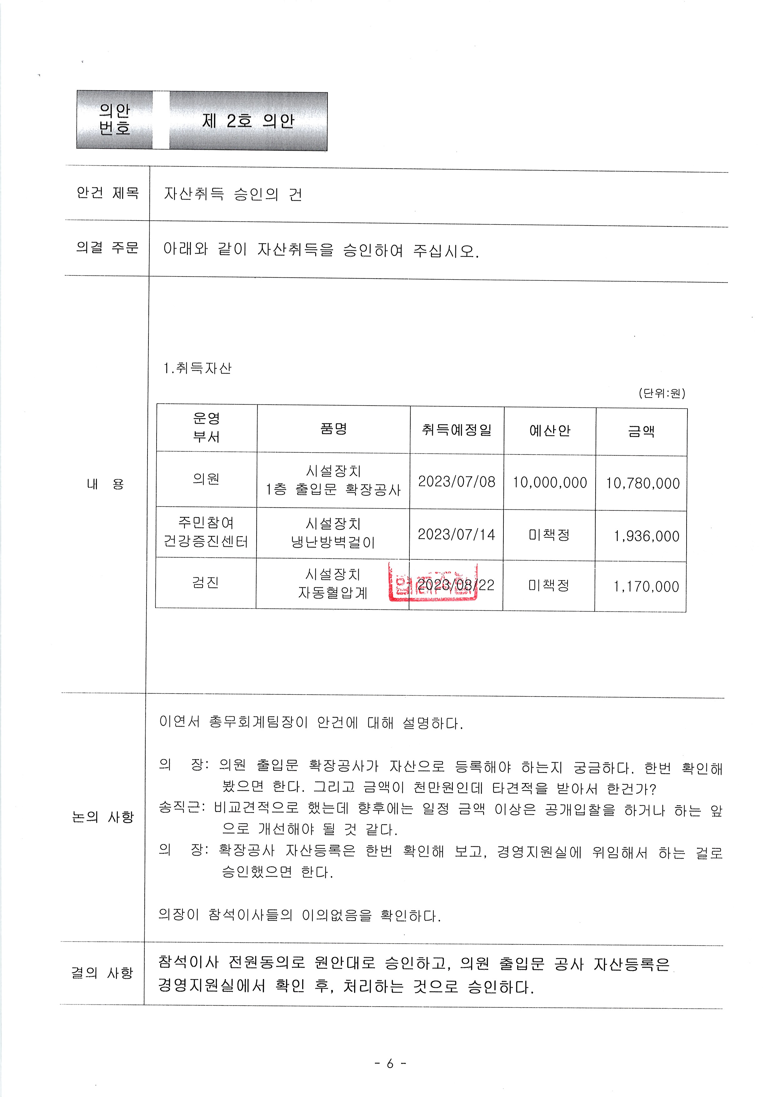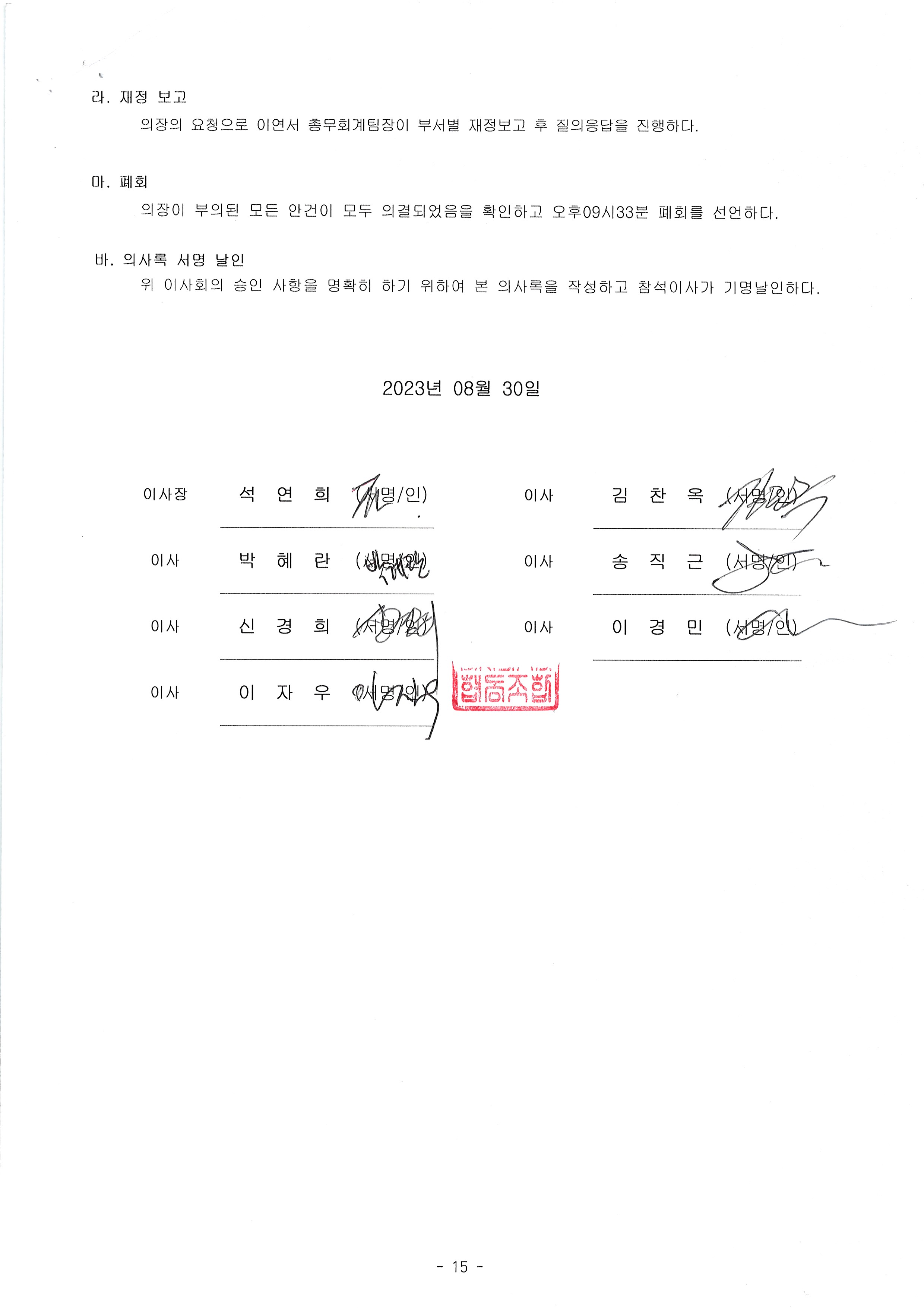 [2023-08] 정기이사회 결과보고 상세내용
