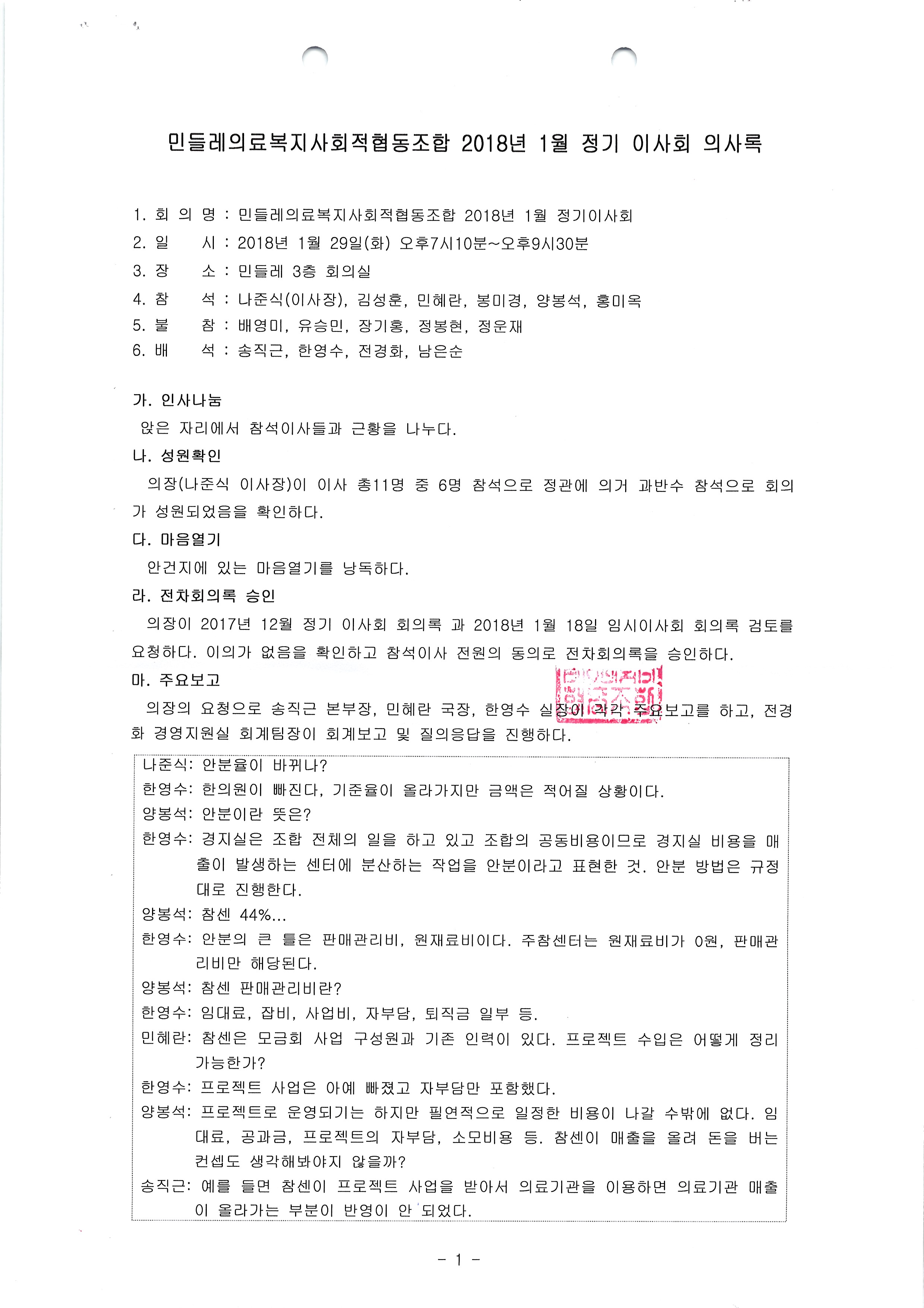 [2018-01] 임시이사회 결과보고