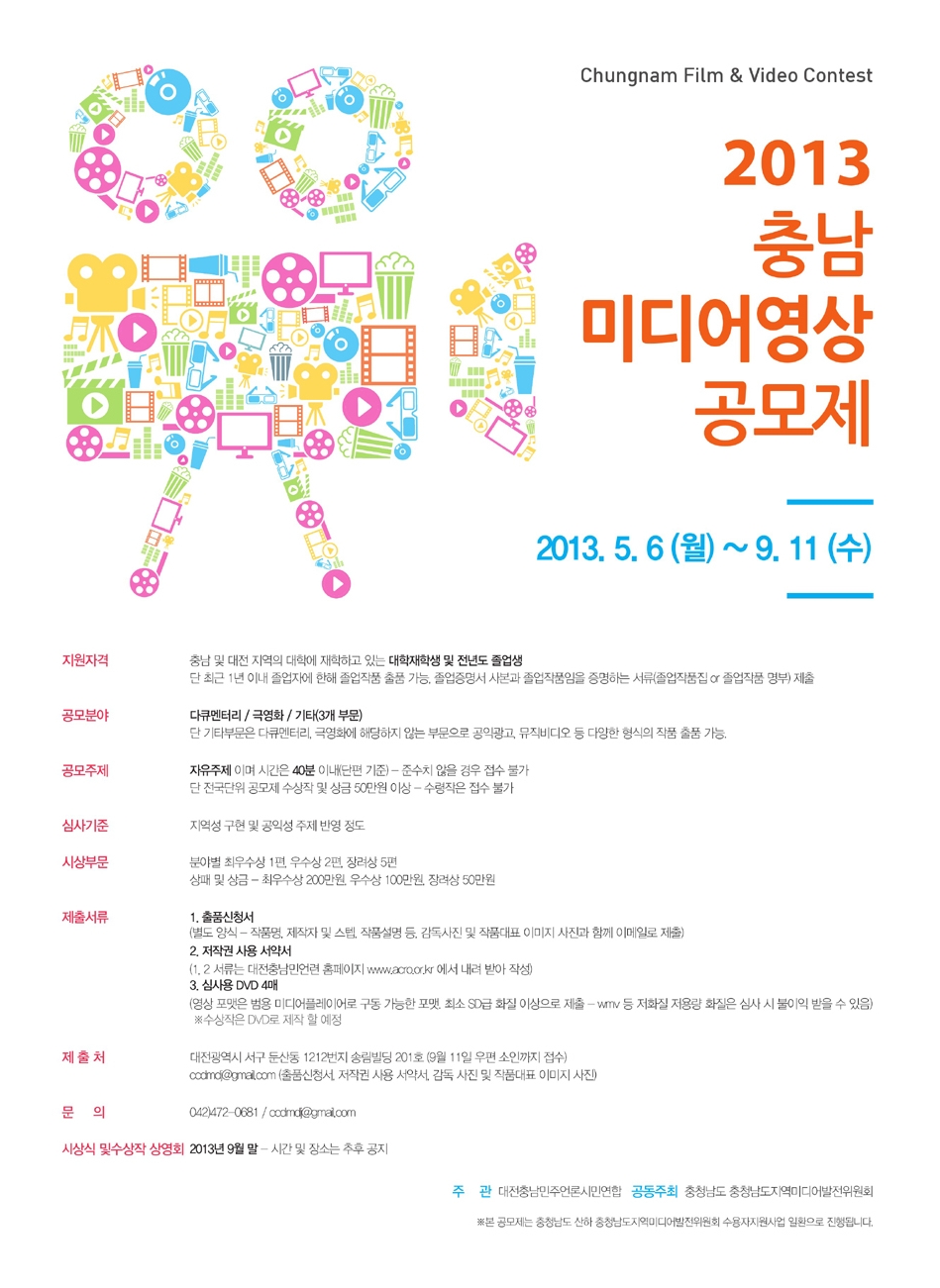 2013년에도 어김없이 충남미디어영상공모제가 열립니다.