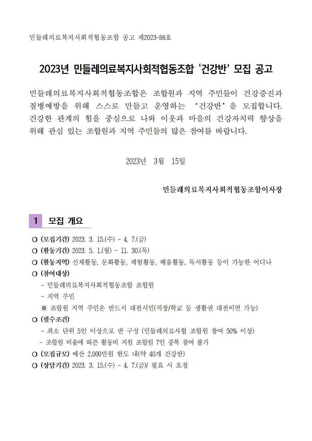 | 제목 | [마감]2023 건강반 모집 공고 |
