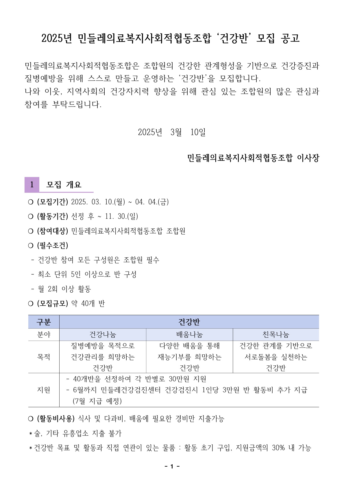 | 제목 | [마감] 2025년 건강반 모집 공고 |