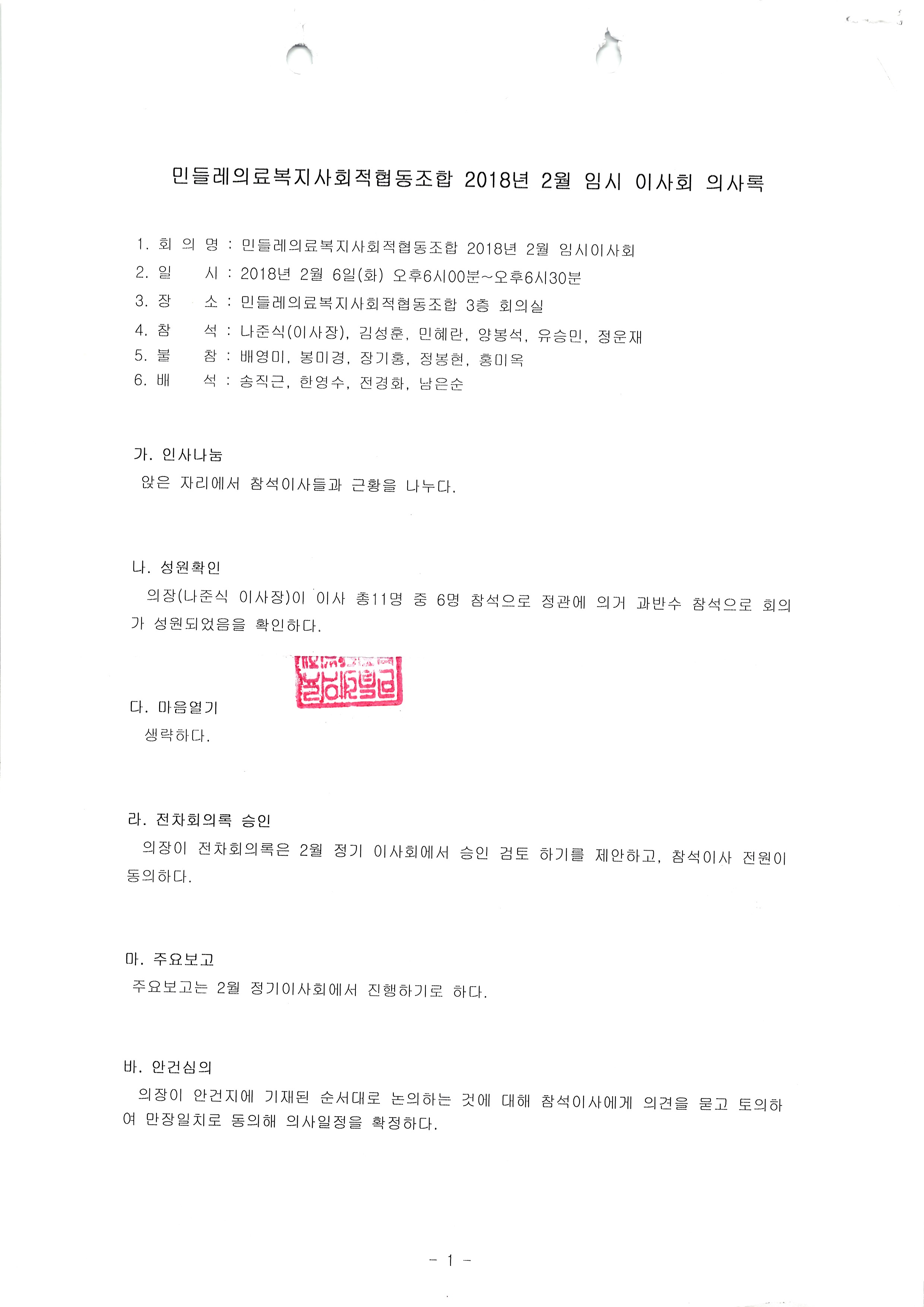 [2018-02] 임시이사회 결과보고