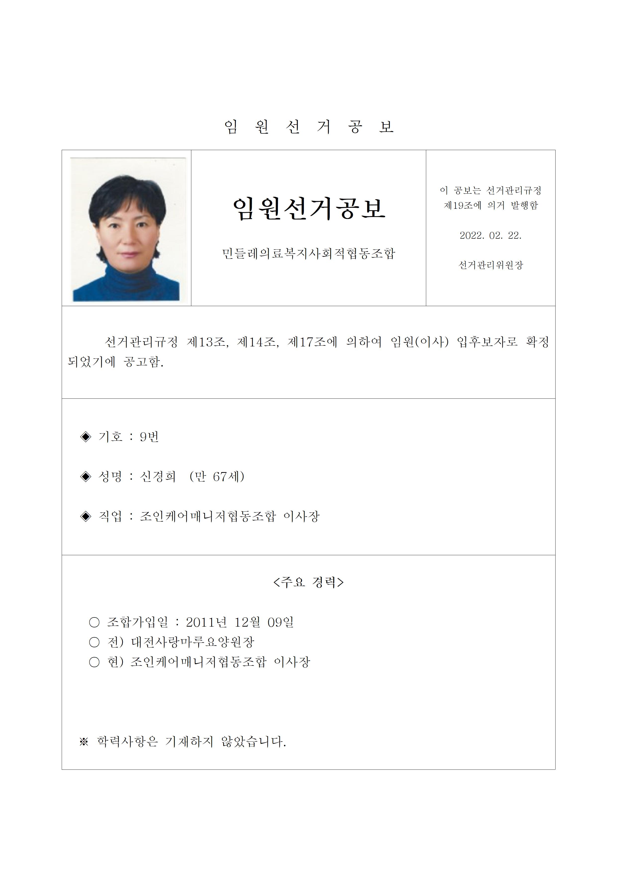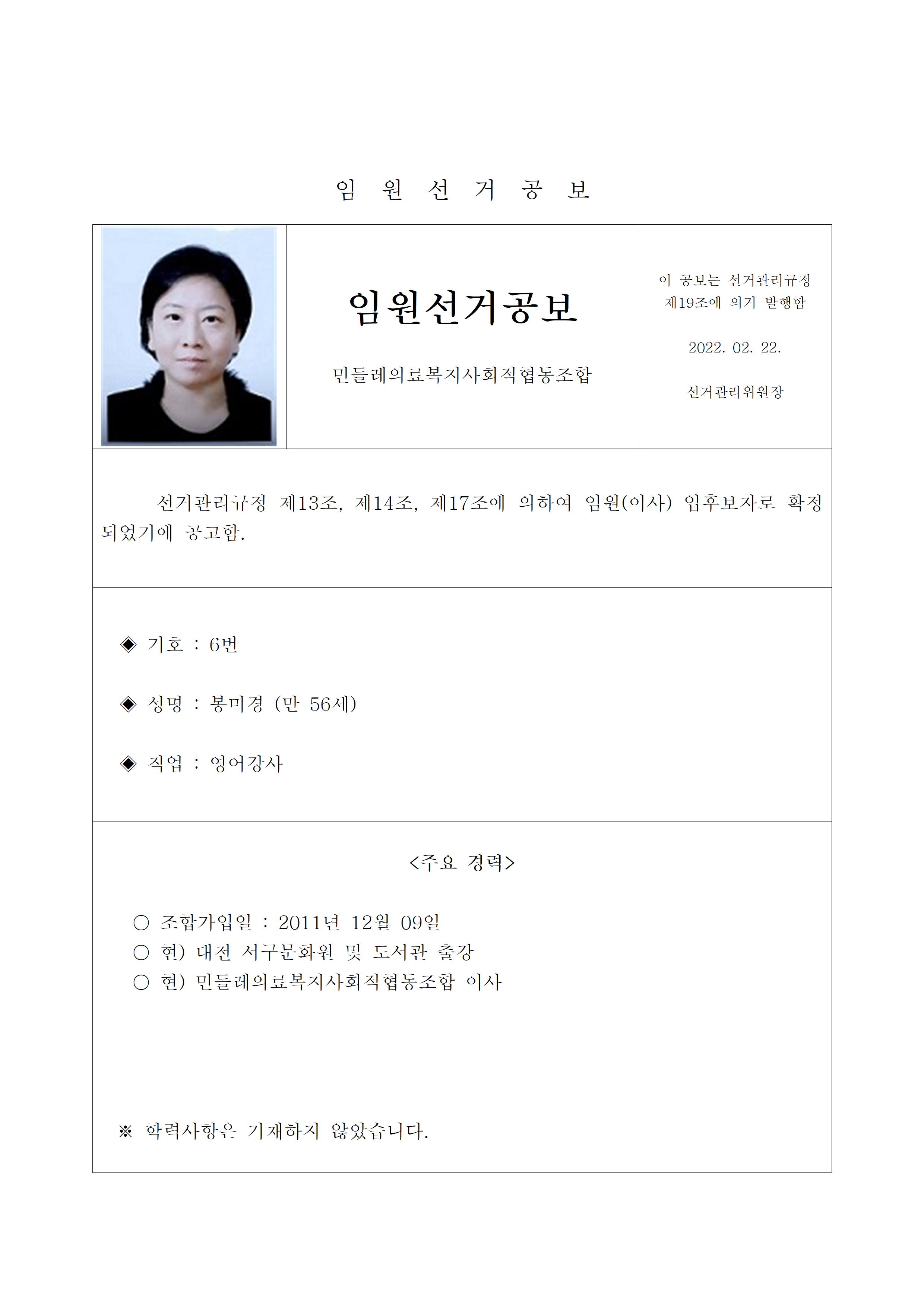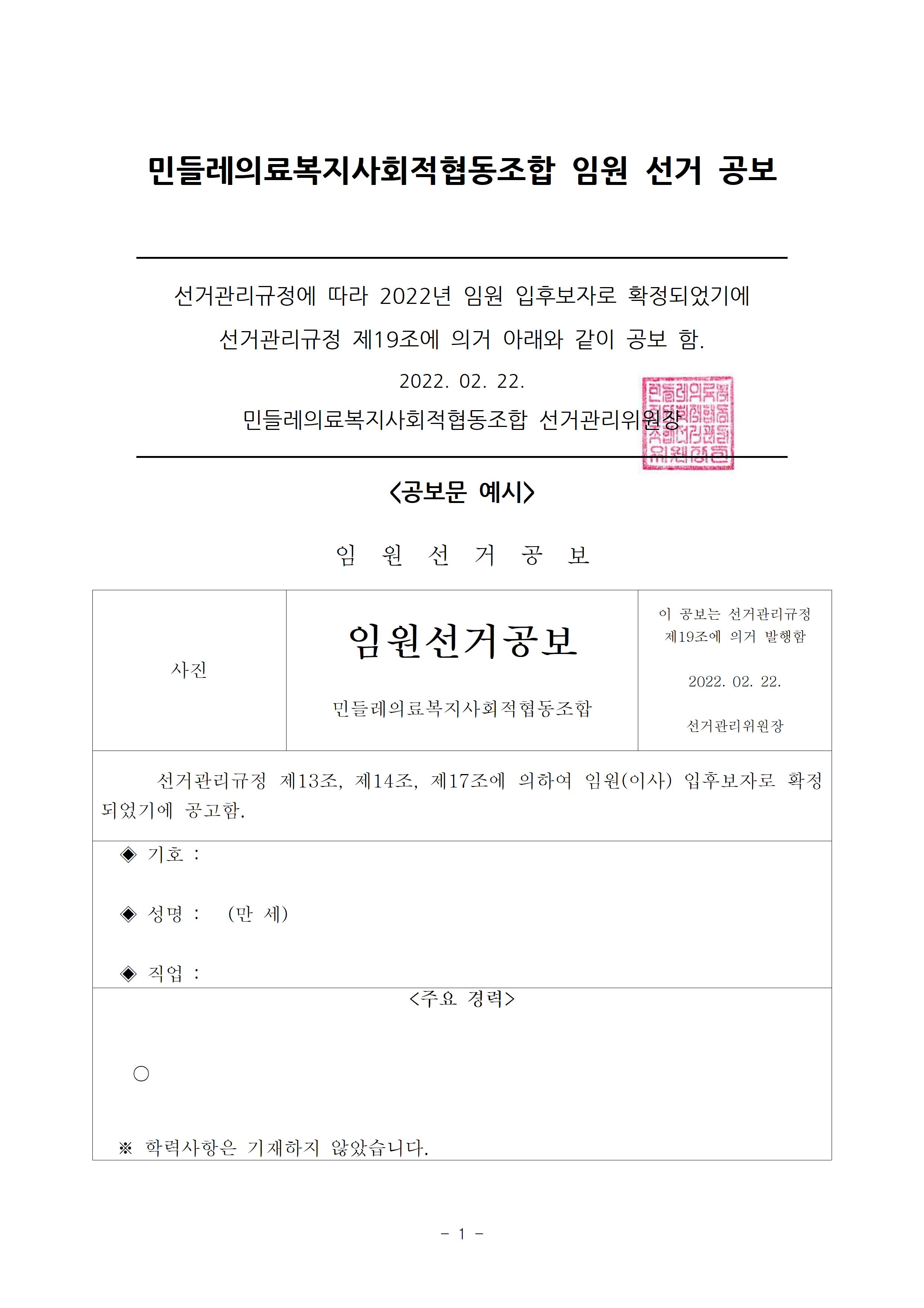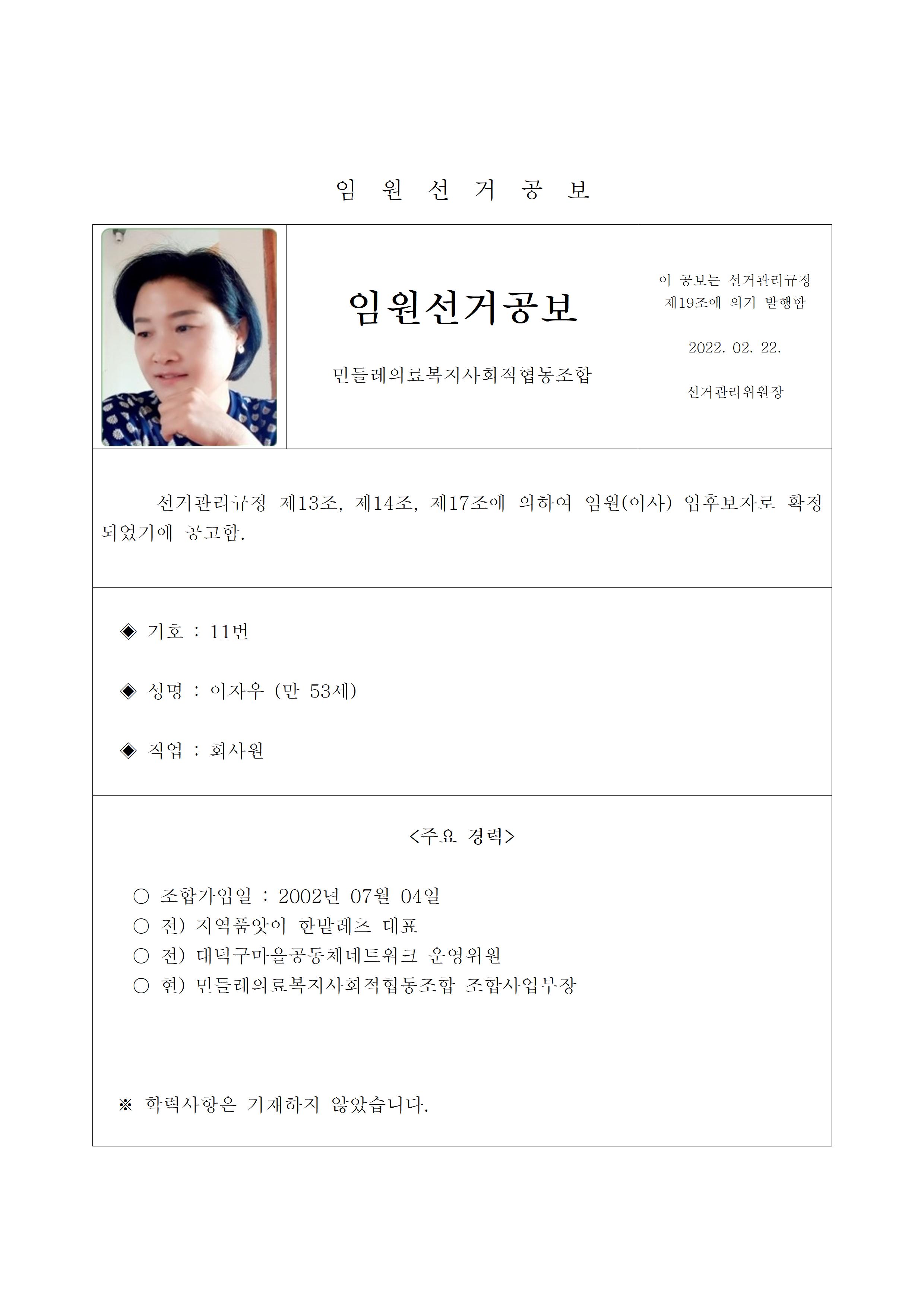 2022년 민들레의료사협 임원(이사, 감사)선거 공보