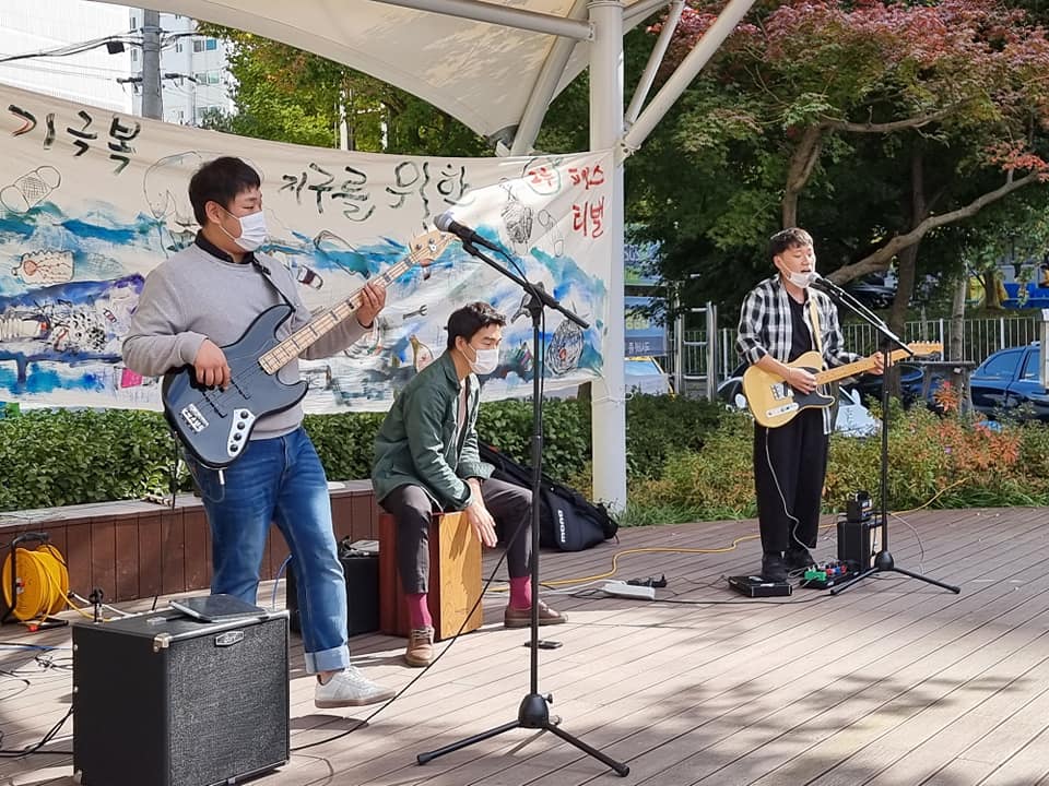 [공연 연습 및 공연 '지구를 위한 그루 페스티벌'] - 보컬/기타 : 은열 - 베이스 : 홍주 - 퍼커션 : 인호 [공연 곡 리스트] 1. 버스커버스커 - 첫사랑 2. 깜빡깜빡 - 너만 생각하면 (자작곡) 3. 깜빡깜빡 - 원.사.하. (자작곡) 4. 이한철 - 슈퍼스타